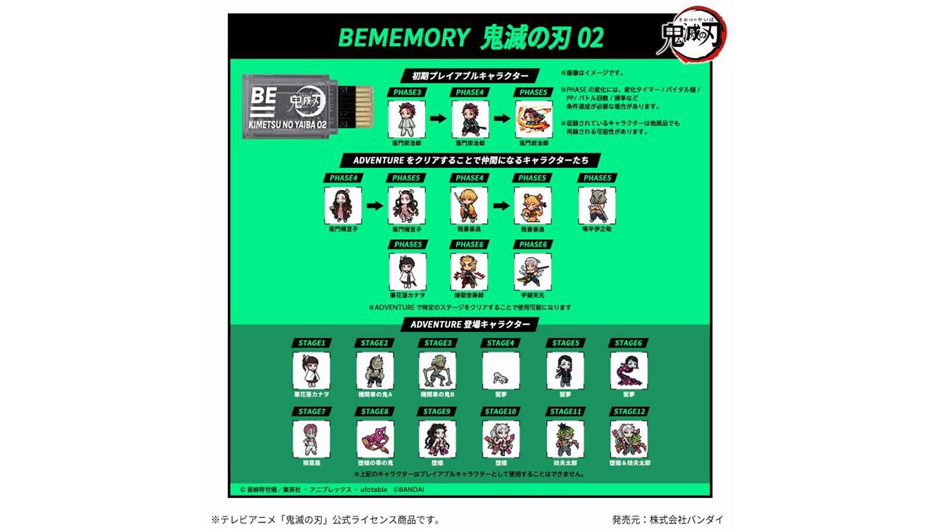 A set of BE memory and the main body that can train characters that appear in the anime "Kimetsu no Yaiba", and the band of the main body is a limited color for this product.
