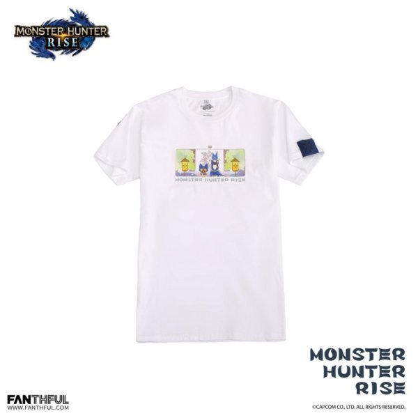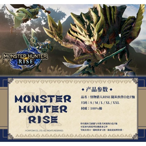 可爱乖巧的造型,仿佛它们已等候在村口,随时准备与你一起赶赴原野狩猎。白色款是印有随从艾露猫与牙猎犬图案,