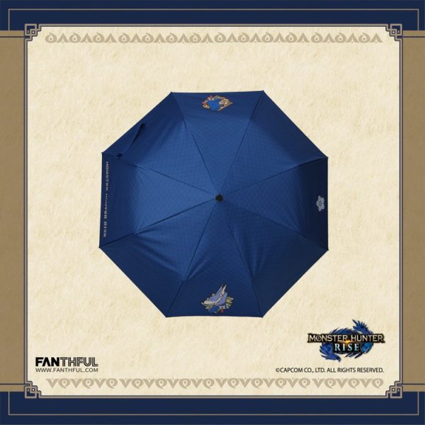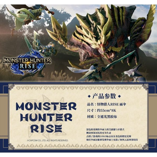 细看伞面还能够发现伞面上布满了和风元素图案暗纹深色的基调将印在伞面上的艾露猫与牙猎犬侧身图案更加生动明显 左右还点缀了游戏的LOGO标志以及变色的樱花花瓣