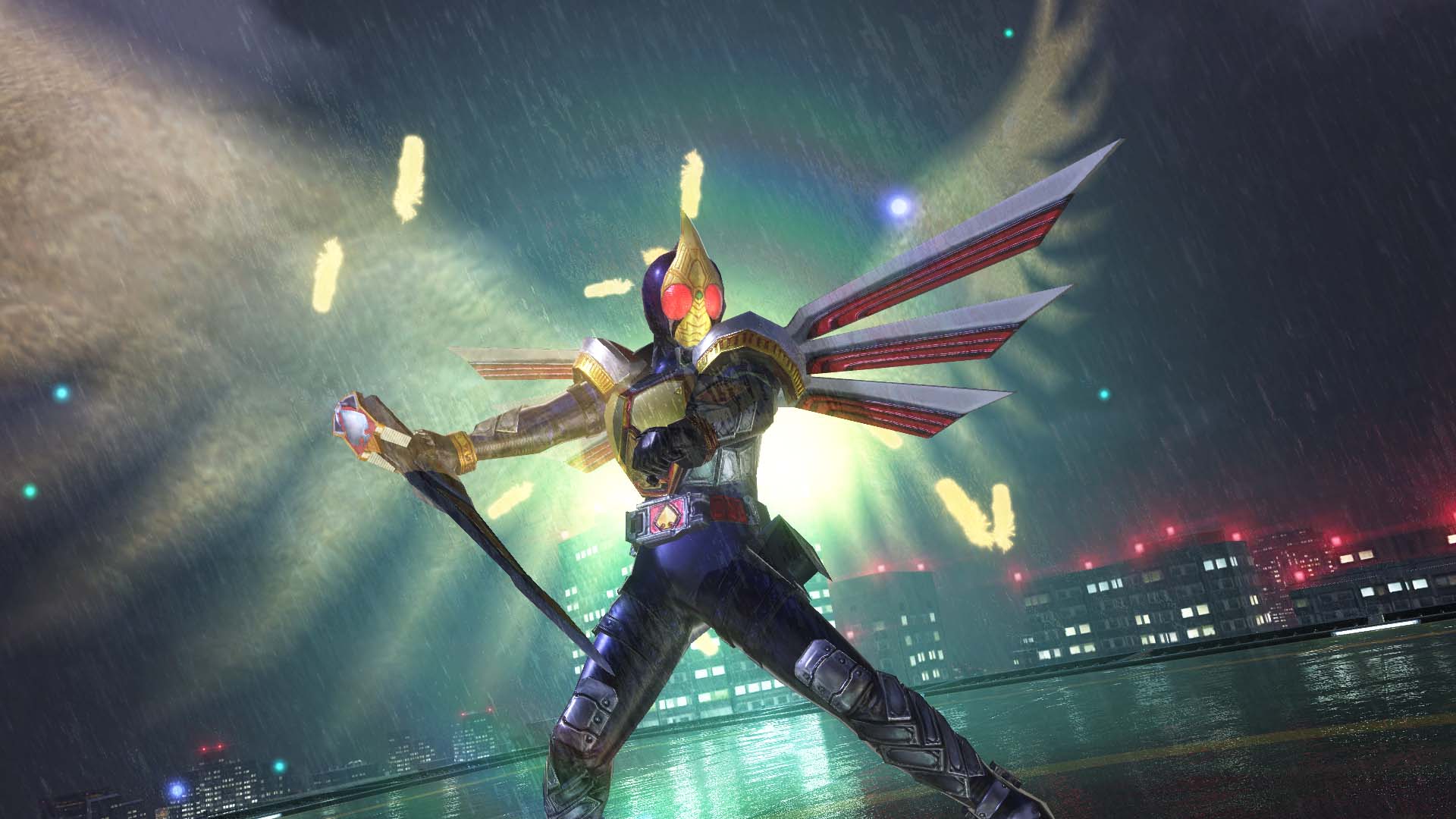 In addition to being able to glide in the sky with 「Tajadol Combo」, Kamen Rider OOO has all-range attack options in his arsenal such as 「Magna Blaze」, 「Lost Blaze」 and etc., be it rush down or long range.