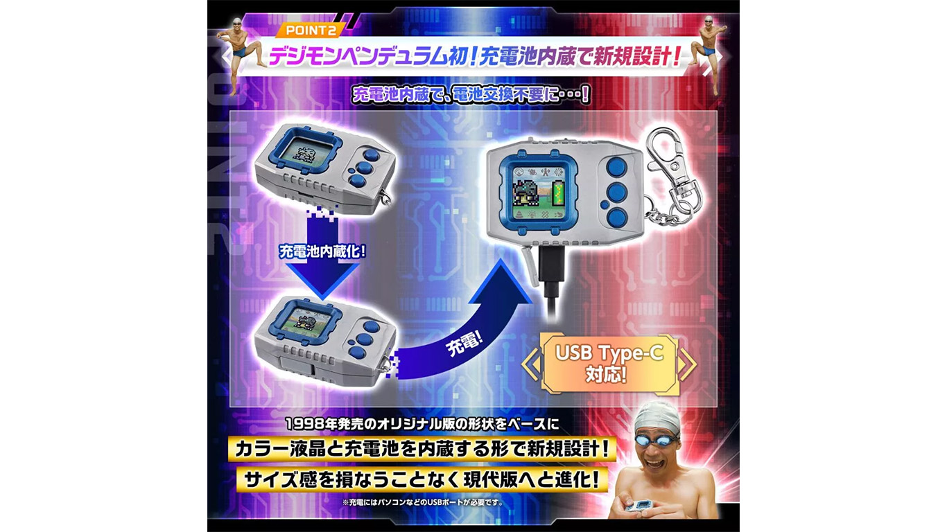 The Digimon Pendulum was remodeled to keep its original size but with built-in rechargeable batteries. Therefore, battery replacement is no longer needed.