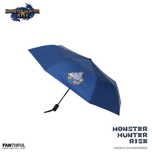 细看伞面还能够发现伞面上布满了和风元素图案暗纹深色的基调将印在伞面上的艾露猫与牙猎犬侧身图案更加生动明显 左右还点缀了游戏的LOGO标志以及变色的樱花花瓣