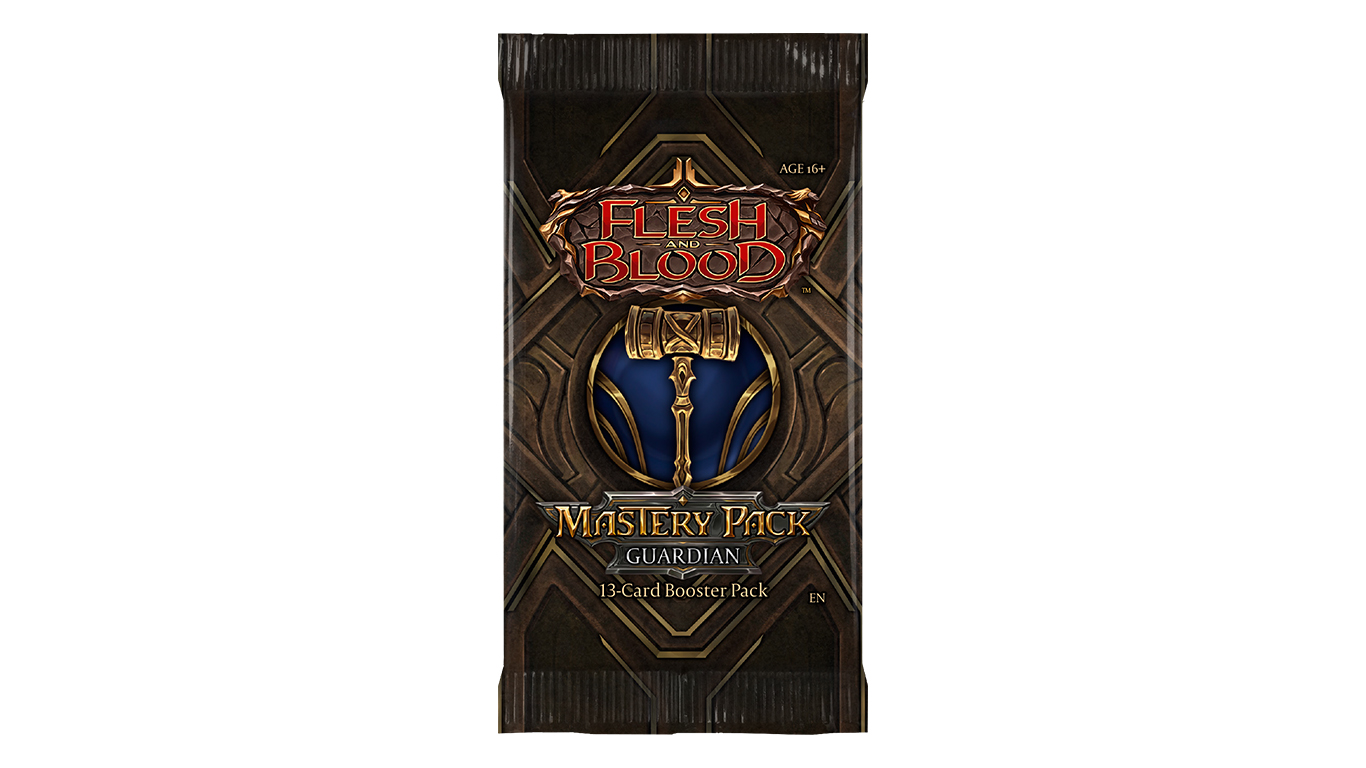 Crack, Shuffle, Play! Mastery Pack Guardian has the fastest, funnest, easiest way to play Flesh and Blood. Simply Crack 3 packs, remove the last 3 cards of each pack, Shuffle the rest, and Play!