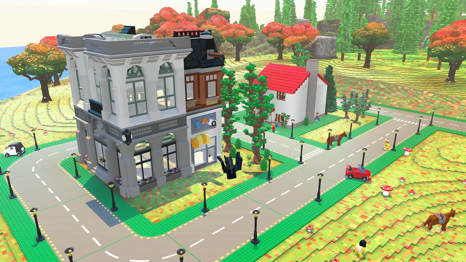 Create anything you can imagine one brick at a time, or use large-scale landscaping tools to create vast mountain ranges and dot your world with tropical islands.