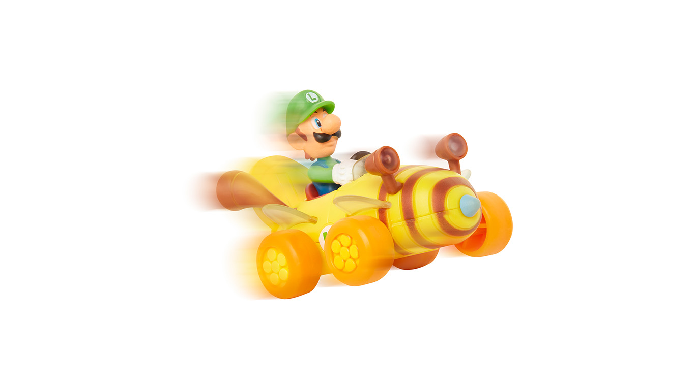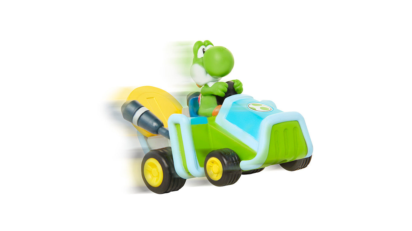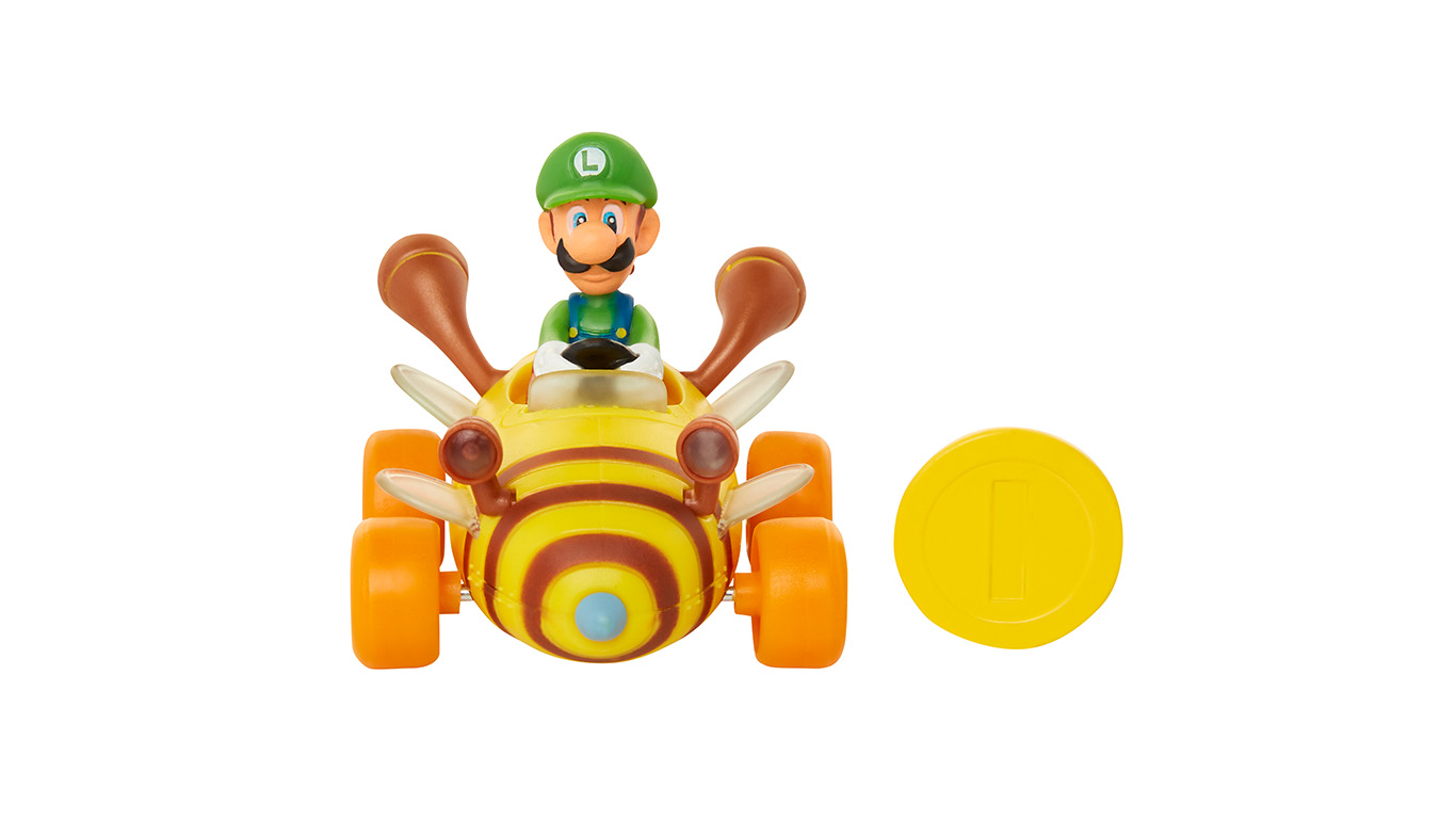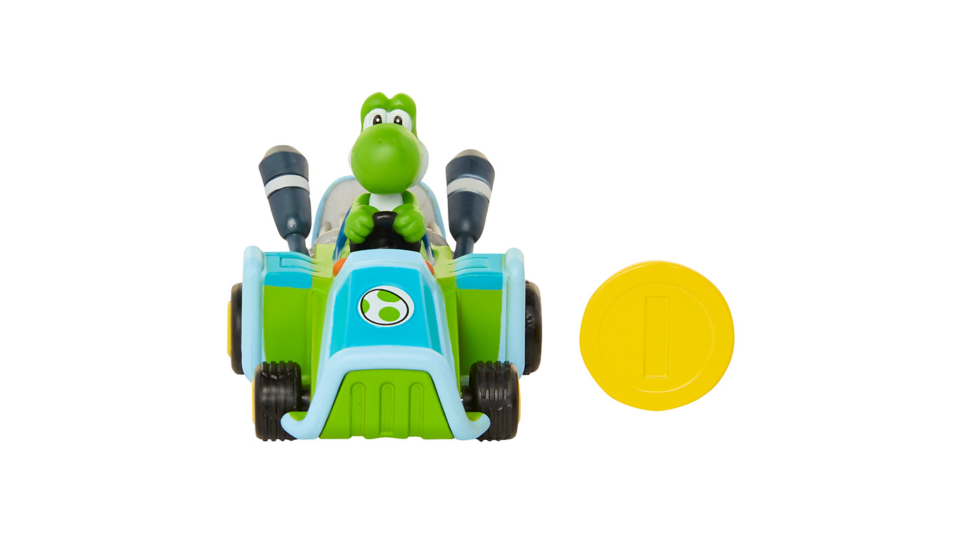 Pull Back and Go! Super Mario Coin Racers are fun 3.5″ Karts that come with a signature die cast gold coin, allowing the kart to perform wheelies and 360s. Choose from Mario, Yoshi and Luigi – Collect them all!