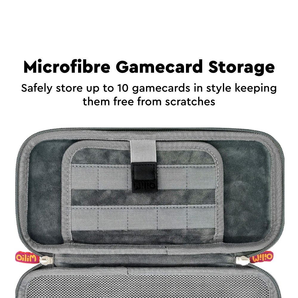 - Microfibre Gamecard Storage: Safely store up to 10 gamecards in style keeping them free from scratches.