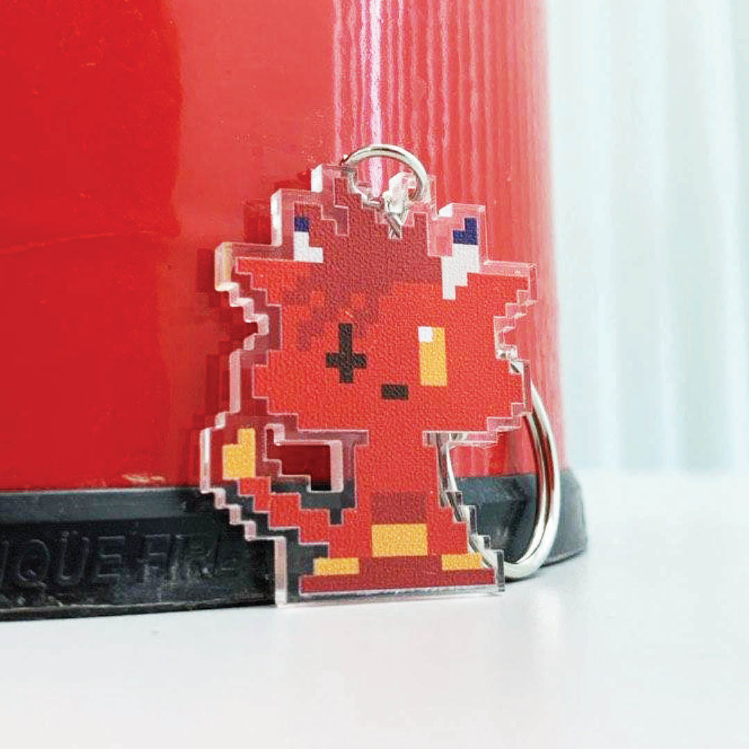 A TinyRobot Exclusive Merchandise Acrylic Keychain featuring Red Beast.